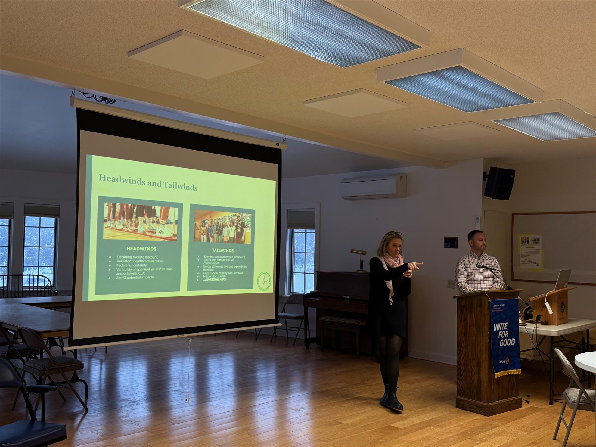 Megan Messler (left) and Gary Marckres (right) present the CVSD budget